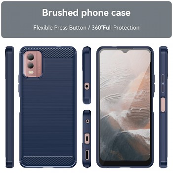 Pouzdro Techsuit Carbon Silicone v elegantní modré barvě je vyrobeno z odolného silikonu, který poskytuje vynikající ochranu proti nárazům a poškrábání. Zadní strana pouzdra se pyšní jemnou texturou imitující broušený kov, která dodává telefonu sofistikovaný vzhled a zároveň zlepšuje úchop. Horní a spodní okraje jsou zdobeny charakteristickou texturou karbonových vláken, jež nejen podtrhuje moderní design, ale také zvyšuje odolnost v nejvíce exponovaných místech. Díky preciznímu zpracování pouzdro dokonale obepíná telefon a zachovává jeho štíhlý profil.