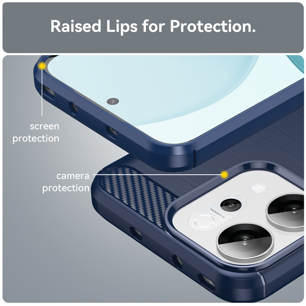 Design pouzdra Techsuit Carbon Silicone v modré barvě je inspirován moderní estetikou. Zadní strana pouzdra se pyšní jemnou texturou imitující broušený kov, která dodává zařízení sofistikovaný vzhled a zároveň zlepšuje úchop. Horní a spodní část zadní strany, stejně jako oblast kolem výřezu pro fotoaparát, jsou doplněny o stylovou texturu karbonových vláken, která nejenže podtrhuje sportovní eleganci, ale také zvyšuje odolnost v nejvíce namáhaných místech. Přesné výřezy zajišťují bezproblémový přístup ke všem portům a tlačítkům, zatímco zvýšené okraje chrání displej a fotoaparát před poškrábáním.