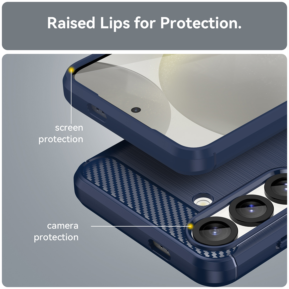Toto pouzdro se pyšní moderním a funkčním designem. Zadní strana je opatřena jemnou texturou imitující broušený kov, která dodává telefonu sofistikovaný vzhled a zároveň zlepšuje úchop. Horní a spodní část zadní strany zdobí elegantní karbonová textura, která nejenže vypadá stylově, ale také zvyšuje odolnost v nejvíce exponovaných místech. Modrá barva je hluboká a decentní, což podtrhuje prémiový charakter vašeho telefonu. Pouzdro je vyrobeno z kvalitního silikonu, který je příjemný na dotek a zároveň efektivně tlumí nárazy.