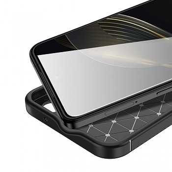 Pouzdro Techsuit CarbonFiber se pyšní sofistikovaným vzhledem v matně černé barvě. Zadní strana je rozdělena na dvě části: spodní část zdobí výrazná textura imitující karbonová vlákna, která dodává pouzdru sportovní a zároveň luxusní nádech. Horní část kolem modulu fotoaparátu je hladká, matná a elegantně doplňuje celkový vzhled. Vnitřní strana pouzdra je opatřena geometrickým vzorem, který napomáhá rozptylu tepla a absorpci nárazů, čímž zvyšuje ochranu vašeho zařízení. Pouzdro je vyrobeno z flexibilního, ale odolného materiálu, který zajišťuje snadnou instalaci a pevné uchycení telefonu. Přesné výřezy pro konektory, mikrofony, reproduktory a fotoaparáty zaručují plnou funkčnost telefonu bez omezení. Zvýšené okraje kolem displeje a fotoaparátu poskytují dodatečnou ochranu proti poškrábání při položení na rovný povrch.