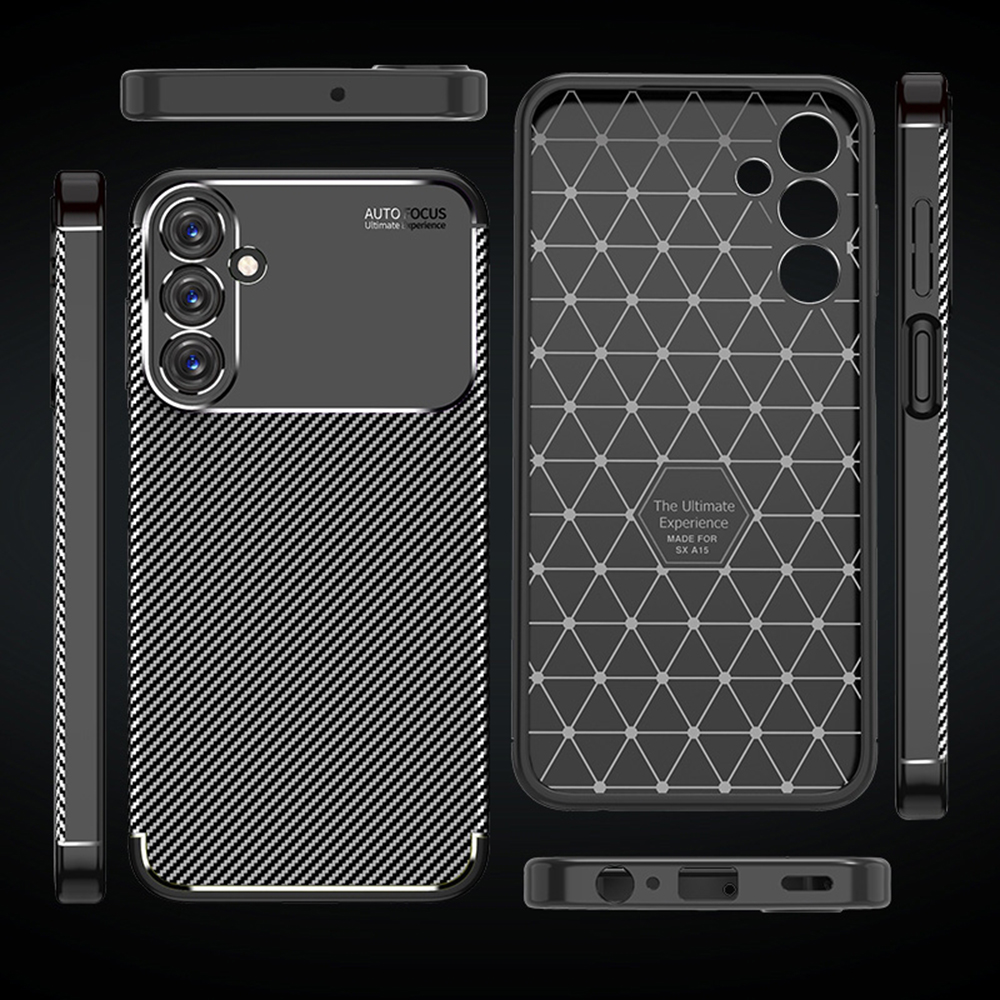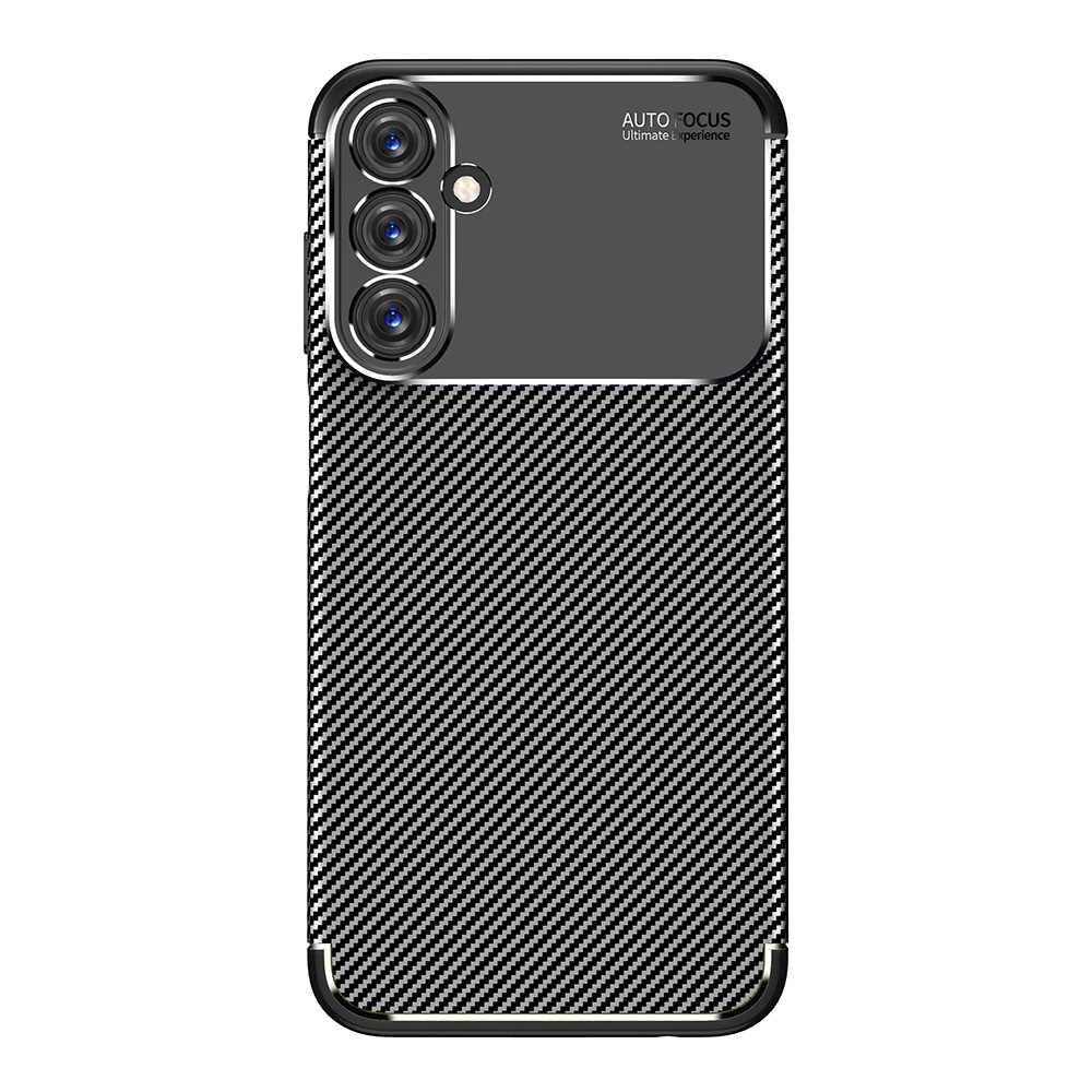 Pouzdro Techsuit CarbonFiber pro Samsung Galaxy A25 5G se pyšní sofistikovaným designem v černé barvě. Spodní dvě třetiny pouzdra zdobí moderní textura imitující karbonová vlákna, která dodává pouzdru dynamický a sportovní vzhled. Horní část je pak opatřena hladkým, matným povrchem, který elegantně doplňuje celkový design a zároveň poskytuje dostatečný prostor pro precizní výřezy pro fotoaparáty a blesk. Na této hladké části je decentně umístěn nápis "AUTO FOCUS Ultimate Experience", který podtrhuje zaměření na detail. Pouzdro je navrženo s mírně zvýšenými okraji, které chrání displej a čočky fotoaparátu před poškrábáním při položení na rovnou plochu. Díky přesnému zpracování jsou všechny výřezy pro konektory, mikrofony, reproduktory a fotoaparáty dokonale sladěny, což zajišťuje neomezenou funkčnost vašeho zařízení. Tlačítka si zachovávají jistý stisk a přístup k nabíjecímu portu je vždy bezproblémový.