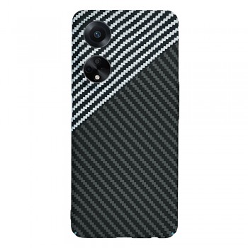 Pouzdro Techsuit Carbonite FiberShell se pyšní unikátním vzhledem inspirovaným karbonovými vlákny. Zadní strana je rozdělena diagonální linií na dvě části. Horní část, která elegantně obepíná modul fotoaparátu, má světlejší šedý odstín s výrazným vzorem karbonových vláken, zatímco spodní část je v tmavším odstínu šedé s jemnějším, ale stále patrným karbonovým vzorem. Tento design dodává telefonu dynamický a sofistikovaný vzhled. Kryt je navržen tak, aby přesně kopíroval křivky telefonu Oppo A98 5G, s precizními výřezy pro všechny konektory, mikrofony, reproduktory a fotoaparáty, což zajišťuje neomezenou funkčnost. Tlačítka si zachovávají jistý stisk a přístup k nabíjecímu portu je vždy bezproblémový.
