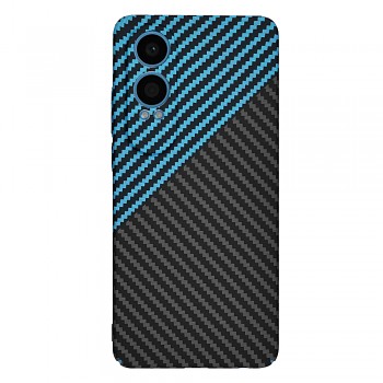 Pouzdro Techsuit Carbonite FiberShell se pyšní dynamickým designem inspirovaným karbonovými vlákny. Zadní strana je rozdělena diagonální linií, kde se snoubí elegantní tmavě šedá/černá karbonová textura s výraznou modrou karbonovou texturou v horní levé části. Tento kontrast vytváří moderní a sportovní dojem. Přesné výřezy pro fotoaparáty jsou dokonale integrovány do modré části designu, což podtrhuje precizní zpracování a estetickou harmonii.