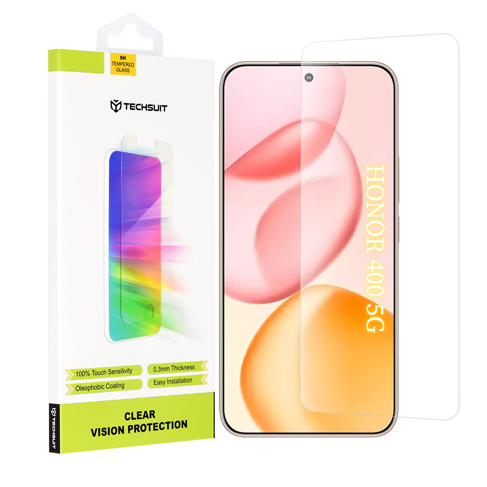 Ochranné sklo Techsuit Clear Vision Glass pro Honor 400 se vyznačuje křišťálově čistým a transparentním provedením, které dokonale splyne s displejem vašeho telefonu a zachová jeho původní vzhled i barevné podání. Je precizně vyřezáno tak, aby pokrývalo celou plochu displeje a zároveň respektovalo výřezy pro přední kameru a senzory, což zajišťuje jejich plnou funkčnost. Díky tloušťce pouhých 0,3 mm je sklo téměř neznatelné a nijak neovlivňuje citlivost dotyku. Balení produktu je navrženo s důrazem na praktičnost a obsahuje vše potřebné pro snadnou instalaci, včetně čisticích ubrousků a samolepek pro odstranění prachu.