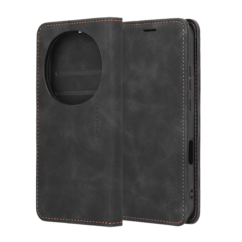 Tento elegantní flipový kryt v černé barvě se pyšní sofistikovaným designem s jemně texturovaným povrchem, který připomíná broušenou kůži a je příjemný na dotek. Výrazné kontrastní prošívání v hnědém odstínu podél okrajů dodává pouzdru punc originality a zdůrazňuje jeho precizní zpracování. Na přední straně naleznete decentní embosované logo značky Techsuit, které podtrhuje jeho exkluzivitu. Vnitřní strana pouzdra je navržena s ohledem na maximální praktičnost – nabízí dvě kapsy na platební karty a jednu větší přihrádku na bankovky, což z něj činí ideálního společníka pro každodenní nošení. Integrovaný výřez pro sluchátko umožňuje pohodlné telefonování i se zavřeným pouzdrem, čímž zajišťuje neustálou ochranu displeje.