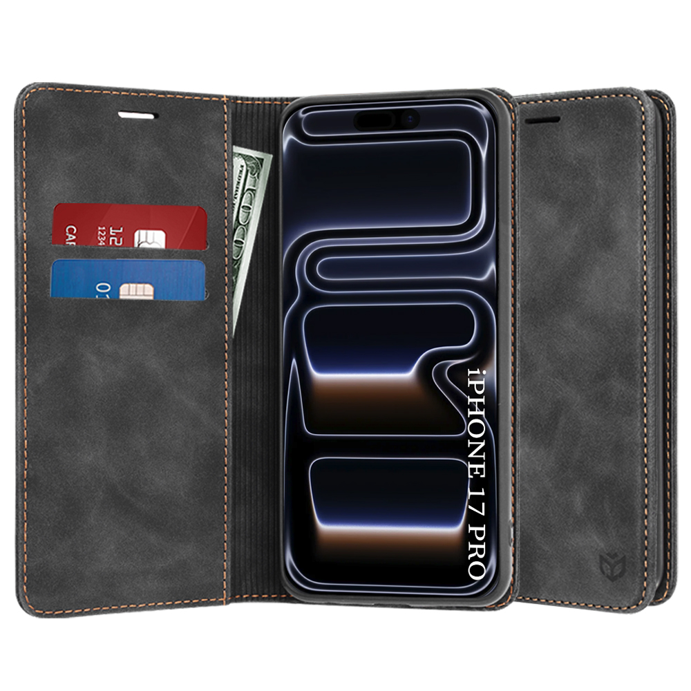 Pouzdro Techsuit Confy Cover se pyšní elegantním designem v klasické černé barvě, která dodá vašemu iPhone 17 Pro nadčasový vzhled. Vnější strana pouzdra má jemně texturovaný povrch, který připomíná broušenou kůži, což zajišťuje příjemný pocit na dotek a zároveň zabraňuje vyklouznutí z ruky. Výrazné kontrastní prošívání po okrajích dodává pouzdru punc luxusu a precizního zpracování. Jedná se o praktické pouzdro typu "peněženka", které chrání telefon ze všech stran a zároveň nabízí vnitřní přihrádky pro platební karty a bankovky, což z něj činí ideálního společníka pro každodenní nošení. Diskrétní logo Techsuit je vkusně umístěno na přední straně.