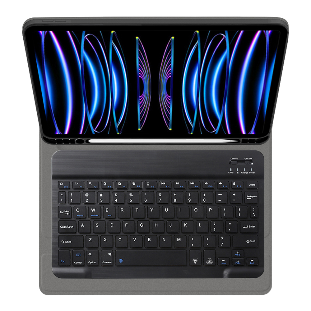 Klíčovou součástí je integrovaná RGB klávesnice, která nabízí pohodlné psaní s nastavitelným podsvícením v různých barvách. Klávesnice je magneticky připojitelná, což umožňuje její snadné odejmutí a použití podle potřeby. Díky tomu můžete iPad používat buď jako notebook s klávesnicí, nebo jako tablet v tenkém pouzdře. Praktický držák na tužku je chytře integrován do designu, takže váš Apple Pencil nebo jiný stylus budete mít vždy po ruce a bezpečně uložený. Pouzdro zároveň slouží jako stabilní stojánek, který umožňuje nastavit ideální úhel pro sledování videí, psaní nebo videohovory.