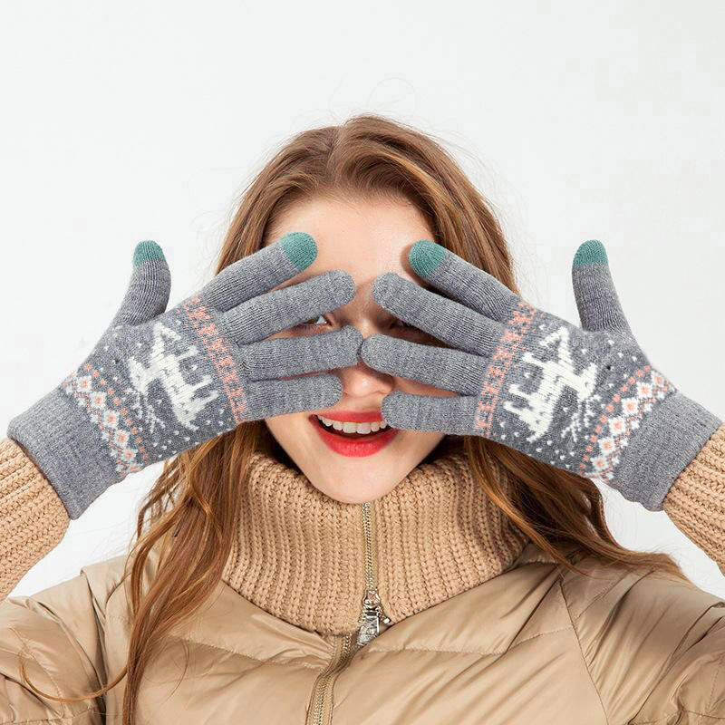 Rukavice Techsuit Raindeer ST0002 se pyšní atraktivním zimním designem. Základní šedá barva je doplněna o roztomilý vzor bílých sobů a jemné geometrické ornamenty v odstínech růžové a oranžové, které dodávají rukavicím hravý a zároveň elegantní vzhled. Jsou vyrobeny z kvalitní vlny, která zaručuje vynikající tepelnou izolaci a příjemný pocit při nošení. Speciální vodivé konečky prstů (palec, ukazováček a prostředníček) v kontrastní světle modré/mentolové barvě umožňují bezproblémové ovládání dotykových obrazovek, aniž byste si museli rukavice sundávat.