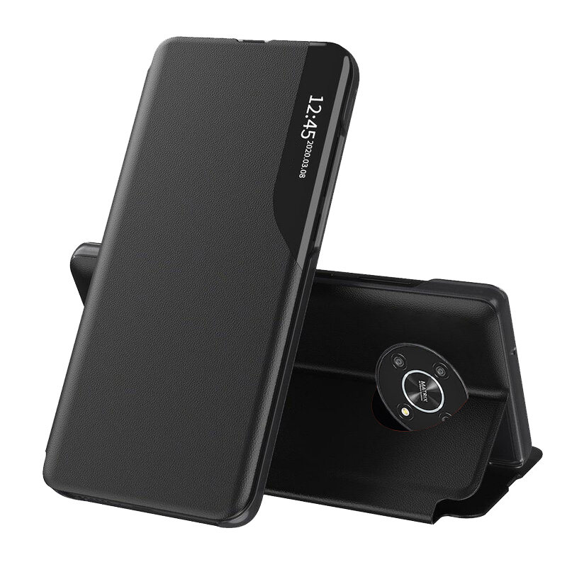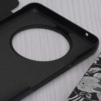 Design pouzdra Techsuit eFold se vyznačuje minimalistickým a elegantním vzhledem. Vnější strana je vyrobena z kvalitního materiálu s jemnou texturou, která je příjemná na dotek a zároveň zajišťuje pevný úchop. Přední odklápěcí kryt disponuje průhledným vertikálním pruhem, který umožňuje snadnou kontrolu času a notifikací bez nutnosti otevírání pouzdra. Zadní strana je precizně tvarovaná s velkým kruhovým výřezem, který dokonale obepíná modul fotoaparátu telefonu Honor Magic 4 Lite 5G a chrání jej před poškrábáním. Pouzdro lze navíc snadno složit do praktického stojánku pro pohodlné sledování obsahu na šířku.