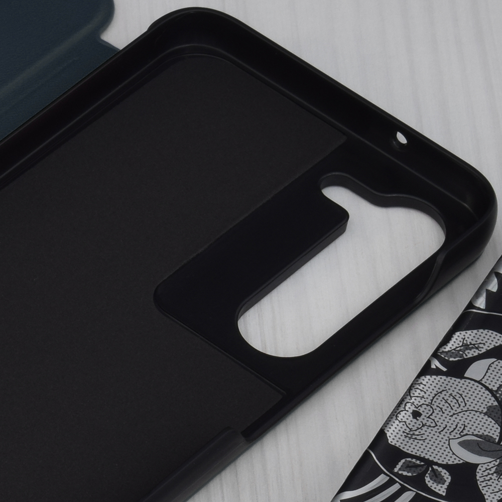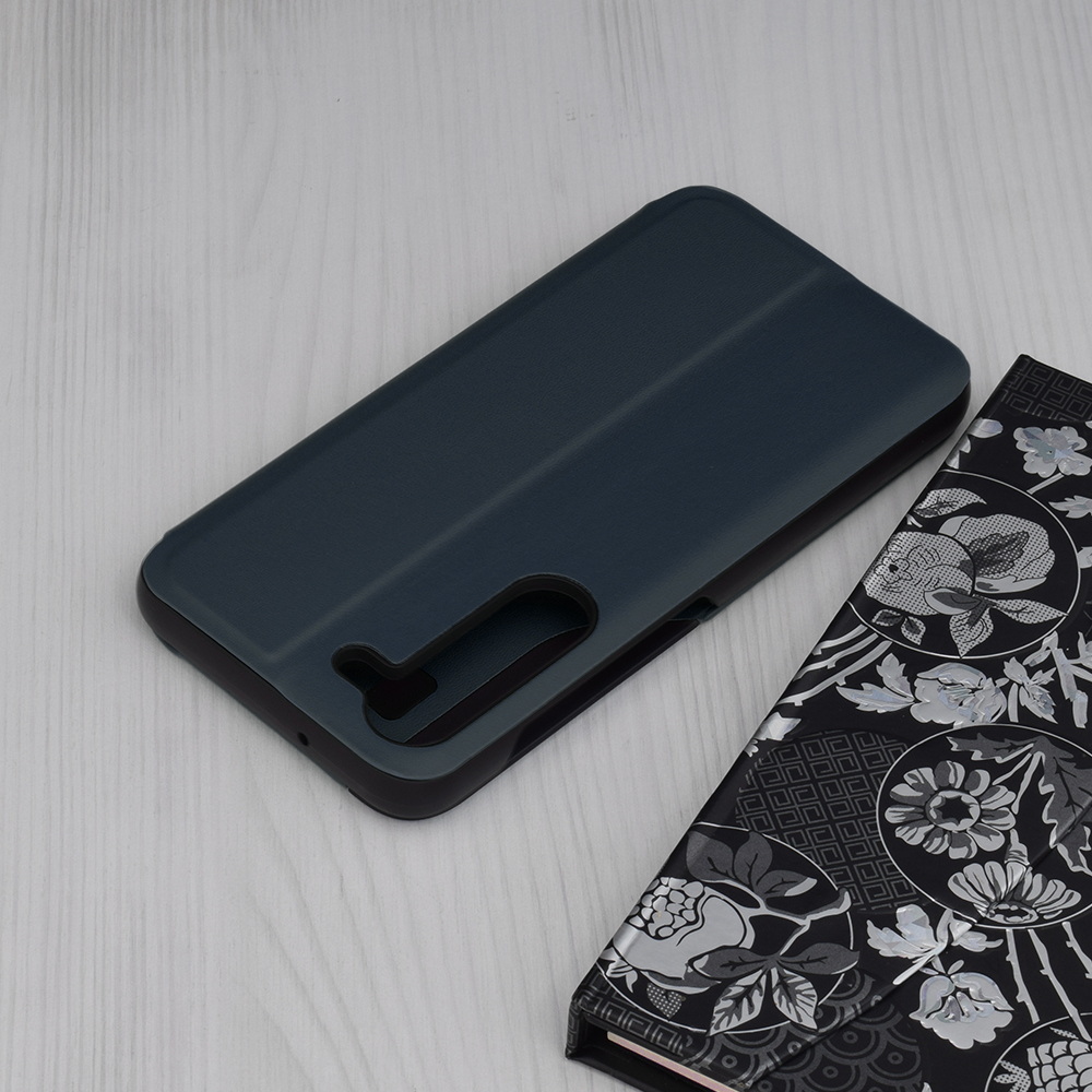 Design pouzdra se vyznačuje elegantní texturou, která je příjemná na dotek a zároveň zajišťuje pevný úchop. Na přední straně je integrován průhledný vertikální pruh, který umožňuje rychlý přehled o čase, datu a notifikacích, aniž byste museli pouzdro otevírat. Díky promyšlené konstrukci lze pouzdro snadno složit do praktického stojánku, což je ideální pro sledování videí nebo videohovory. Přesné výřezy pro fotoaparát, konektory a reproduktory zaručují plnou funkčnost vašeho zařízení bez jakéhokoli omezení.