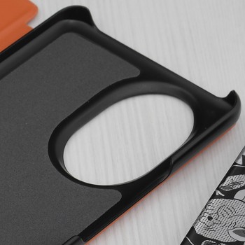 Pouzdro se pyšní sofistikovaným designem s texturou připomínající kůži v teplém oranžovém odstínu. Jeho flipové provedení chrání displej telefonu před poškrábáním a nárazy. Jedinečným prvkem je průhledný vertikální pruh na přední straně, který umožňuje rychlý náhled na čas, datum a notifikace, aniž byste museli pouzdro otevírat. Precizní výřezy zajišťují bezproblémový přístup ke všem konektorům, mikrofonům, reproduktorům a fotoaparátům, zatímco tlačítka si zachovávají jistý stisk. Pouzdro lze navíc snadno složit do praktického stojánku, což oceníte při sledování videí nebo videohovorech.