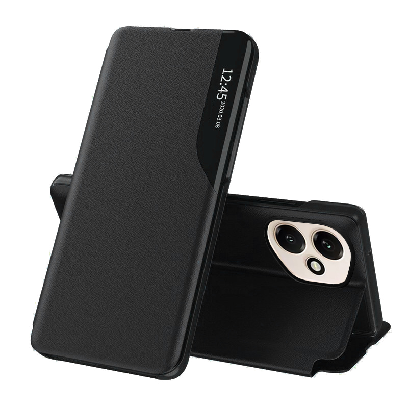 Pouzdro eFold Series se pyšní sofistikovaným designem s texturovaným povrchem, který připomíná kůži a dodává telefonu luxusní vzhled. Jeho černá barva podtrhuje eleganci a univerzálnost. Jedinečným prvkem je průhledný vertikální pruh na přední straně, který umožňuje rychlý náhled na důležité informace, jako je čas a datum, aniž byste museli pouzdro otevírat. Díky promyšlené konstrukci lze pouzdro snadno složit do praktického stojánku, což je ideální pro sledování videí nebo videohovory. Přesné výřezy pro konektory, mikrofony, reproduktory a fotoaparáty zajišťují, že funkčnost vašeho telefonu nebude nikdy omezena. Tlačítka mají jistý stisk a přístup k nabíjecímu portu je vždy bezproblémový.