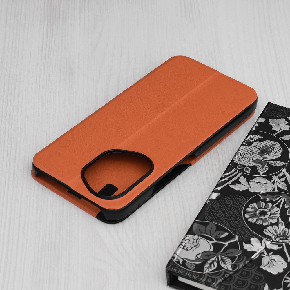 Pouzdro eFold Series se pyšní moderním a minimalistickým designem. Jeho povrch imituje jemnou texturu kůže v atraktivním oranžovém odstínu, který dodá vašemu zařízení osobitý vzhled. Klíčovým prvkem je průhledné okénko na přední straně, které umožňuje rychlý náhled na čas, datum a důležitá oznámení, aniž byste museli pouzdro otevírat. Vnitřní strana je vybavena přesně tvarovanou vaničkou z TPU, která telefon pevně drží a chrání ho před nárazy a poškrábáním. Díky promyšlené konstrukci lze pouzdro snadno složit do praktického stojánku, ideálního pro sledování videí nebo videohovorů.