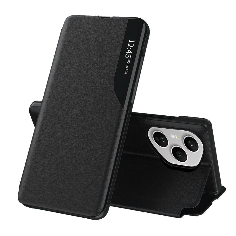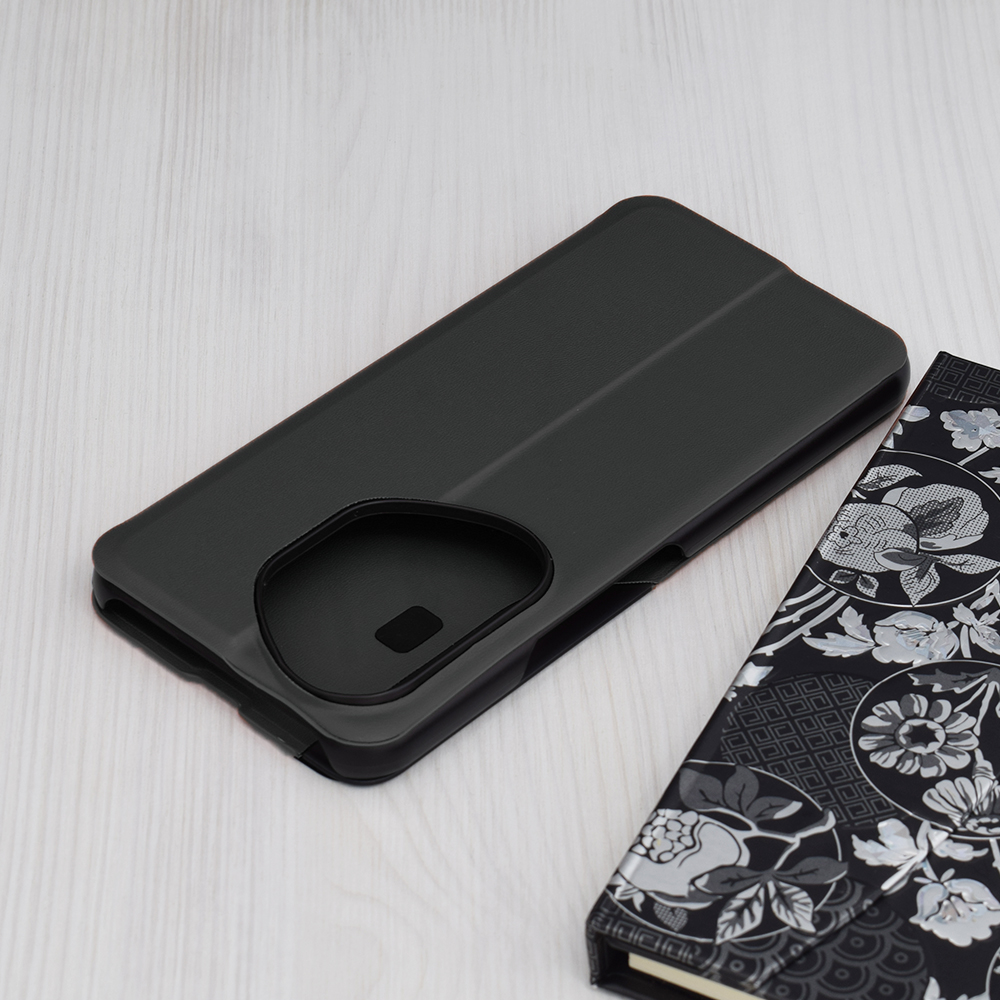 Pouzdro eFold Series se pyšní sofistikovaným flipovým designem, který kompletně chrání váš telefon ze všech stran. Jeho černé provedení dodává zařízení nadčasový a profesionální vzhled. Charakteristickým prvkem je průhledný vertikální pruh na přední straně, který umožňuje rychlý náhled na důležité informace, jako je čas a datum, aniž byste museli pouzdro otevírat. Díky promyšlené konstrukci lze pouzdro snadno složit do praktického stojánku, což je ideální pro sledování videí nebo videohovory. Materiál pouzdra působí elegantně a je příjemný na dotek, zároveň zajišťuje pevný úchop a minimalizuje riziko vyklouznutí telefonu z ruky.
