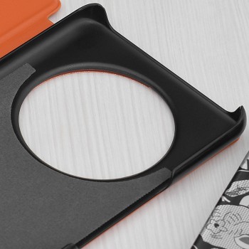 Pouzdro Techsuit eFold Series se pyšní sofistikovaným vzhledem s texturovaným povrchem, který připomíná kůži a dodává mu luxusní nádech. Jeho výrazná oranžová barva zaručuje, že váš telefon bude vždy nepřehlédnutelný. Přední strana pouzdra je vybavena průhledným vertikálním pruhem, který umožňuje snadný náhled na čas a notifikace, aniž byste museli pouzdro otevírat. Na zadní straně naleznete precizní kruhový výřez, který dokonale obepíná modul fotoaparátu vašeho telefonu a zajišťuje jeho plnou funkčnost bez omezení. Vnitřní část pouzdra, která drží telefon, je vyrobena v elegantní černé barvě, což vytváří stylový kontrast s oranžovým exteriérem. Díky své konstrukci lze pouzdro snadno složit do praktického stojánku, ideálního pro sledování videí nebo videohovory.
