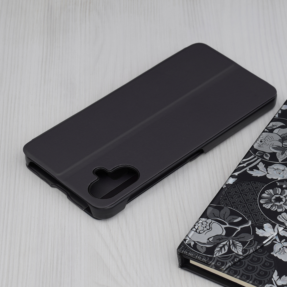 Pouzdro Techsuit eFold Series v černé barvě zaujme svým sofistikovaným a praktickým designem. Vnější povrch je opatřen jemnou texturou, která nejenže dodává pouzdru luxusní vzhled, ale také zajišťuje příjemný a pevný úchop. Charakteristickým prvkem je průhledný vertikální pruh na přední straně, který umožňuje snadný náhled na důležité informace, jako je čas a datum, aniž byste museli pouzdro otevírat. Díky preciznímu zpracování se pouzdro dokonale přizpůsobí tvaru vašeho telefonu a zároveň slouží jako praktický stojánek pro pohodlné sledování obsahu.