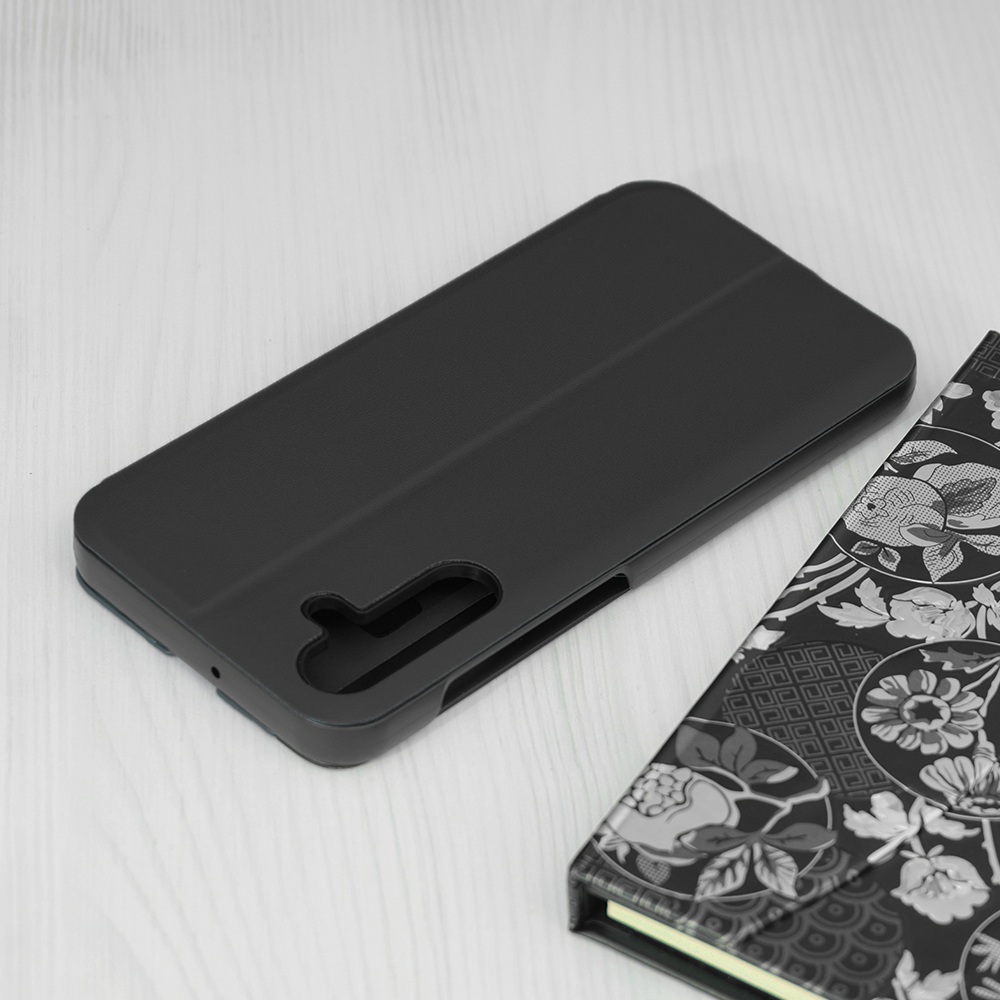 Pouzdro Techsuit eFold Series v elegantní černé barvě je navrženo jako praktický flipový kryt, který poskytuje komplexní ochranu celého telefonu. Jeho povrch je opatřen jemnou texturou, která zajišťuje příjemný úchop a minimalizuje klouzání. Charakteristickým prvkem je průhledný proužek na pravé straně přední strany, který umožňuje rychlý náhled na čas a notifikace bez nutnosti otevírat pouzdro. Zadní strana pouzdra je precizně tvarovaná s výřezy pro fotoaparáty, které dokonale kopírují design telefonu Samsung Galaxy A15. Díky promyšlené konstrukci lze pouzdro snadno složit do praktického stojánku, což je ideální pro sledování videí nebo videohovory.