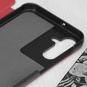 Pouzdro Techsuit eFold Series se pyšní sofistikovaným vzhledem v atraktivní červené barvě, která dodá vašemu telefonu osobitý šmrnc. Vnější strana je vyrobena z kvalitního materiálu s jemnou texturou, připomínající kůži, což zajišťuje příjemný pocit na dotek a zároveň zvyšuje odolnost proti poškrábání a opotřebení. Charakteristickým prvkem je průhledný vertikální pruh na přední straně, který umožňuje rychlý náhled na čas, datum a notifikace, aniž byste museli pouzdro otevírat. Váš telefon je bezpečně usazen v precizně tvarované vnitřní vaničce z černého silikonu/TPU, která absorbuje nárazy a chrání hrany zařízení.
