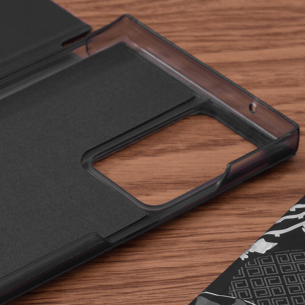Pouzdro Techsuit eFold Series pro Samsung Galaxy Note 20 Ultra 5G v elegantní černé barvě je navrženo jako flipové pouzdro s inteligentním okénkem. Jeho design kombinuje minimalistickou eleganci s praktickou funkčností. Vnější strana pouzdra má jemnou texturu, která připomíná kůži, což zajišťuje příjemný pocit na dotek a pevný úchop. Přední strana je vybavena průhledným vertikálním okénkem, které umožňuje rychlý přehled o čase, datu a notifikacích, aniž byste museli pouzdro otevírat. Vnitřní strana pouzdra je vyrobena z pevného, průhledného materiálu, který bezpečně drží telefon a zároveň odhaluje jeho originální design. Pouzdro lze také složit do praktického stojánku pro pohodlné sledování obsahu.
