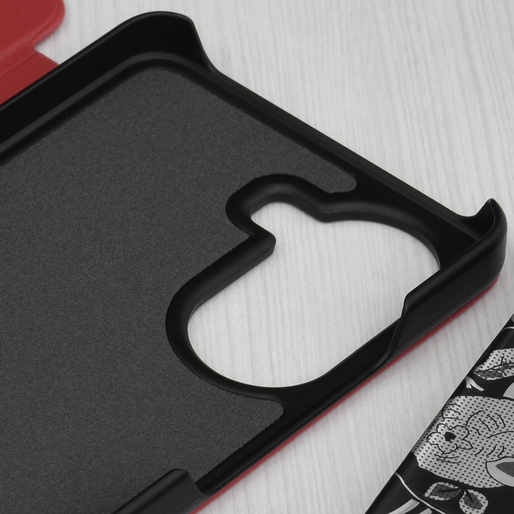 Design pouzdra eFold Series v elegantní červené barvě zaujme na první pohled. Pouzdro je typu "flip" s texturou připomínající kůži, která dodává zařízení luxusní vzhled a příjemný pocit na dotek. Klíčovým prvkem je průhledné okénko na přední straně, které umožňuje rychlý náhled na čas, datum a notifikace bez nutnosti otevírat pouzdro. Díky promyšlené konstrukci lze pouzdro snadno složit do praktického stojánku, ideálního pro sledování videí nebo videohovory. Vnitřní strana pouzdra poskytuje dodatečnou ochranu displeje a celého těla telefonu.