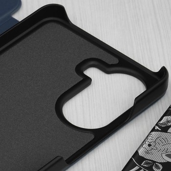 Pouzdro eFold Series se pyšní minimalistickým a zároveň vysoce funkčním designem. Jeho tmavě modrý povrch s jemnou texturou dodává telefonu luxusní vzhled a příjemný pocit na dotek. Klíčovým prvkem je průhledné okénko na přední straně, které umožňuje rychlý přehled o čase, datu a notifikacích, aniž byste museli pouzdro otevírat. Díky preciznímu zpracování jsou všechny výřezy pro konektory, mikrofony, reproduktory a fotoaparáty dokonale sladěny, což zajišťuje neomezenou funkčnost vašeho zařízení. Pouzdro lze navíc snadno složit do praktického stojánku, ideálního pro sledování videí nebo videohovory.