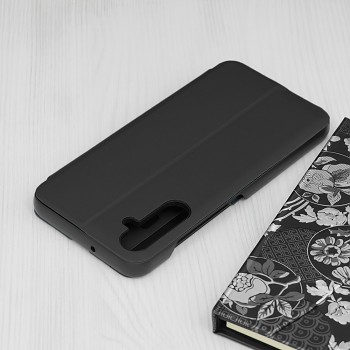 Pouzdro eFold Series se pyšní minimalistickým a elegantním designem v matně černé barvě, která dodává vašemu zařízení profesionální vzhled. Vnější povrch má jemnou texturu, připomínající kůži, což zajišťuje příjemný pocit na dotek a zároveň zabraňuje vyklouznutí z ruky. Klíčovým prvkem je průhledný vertikální pruh na přední straně, který umožňuje rychlý náhled na čas a důležité notifikace, aniž byste museli pouzdro otevírat.