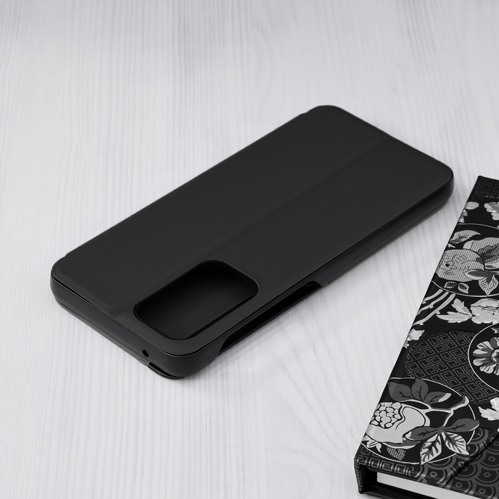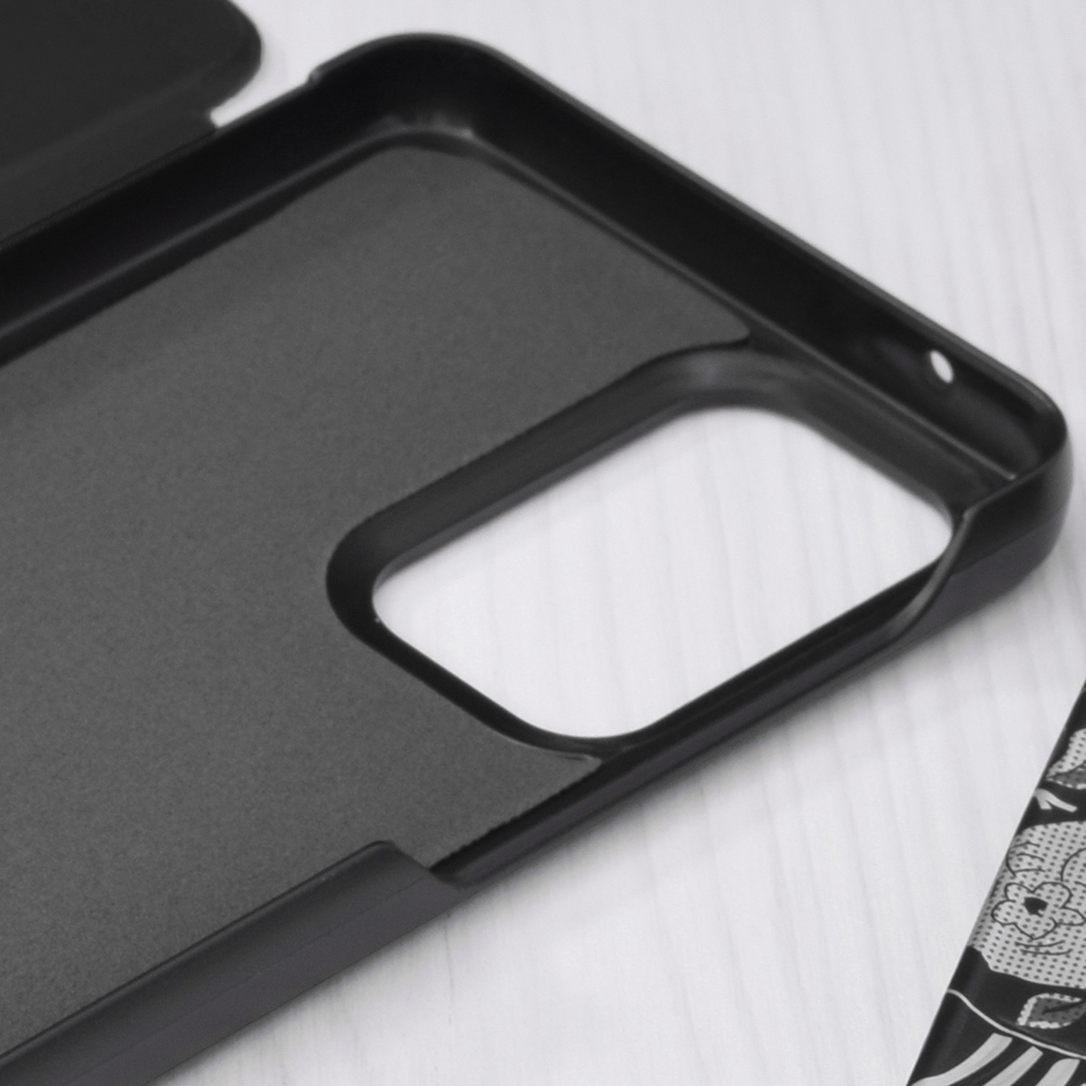 Pouzdro Techsuit eFold Series se pyšní elegantním a minimalistickým designem v klasické černé barvě. Jeho povrch má jemnou texturu imitující kůži, která dodává pouzdru sofistikovaný vzhled a příjemný pocit na dotek. Přední odklápěcí kryt je vybaven průhledným vertikálním pruhem, který umožňuje snadno kontrolovat čas, datum a notifikace, aniž byste museli pouzdro otevírat.