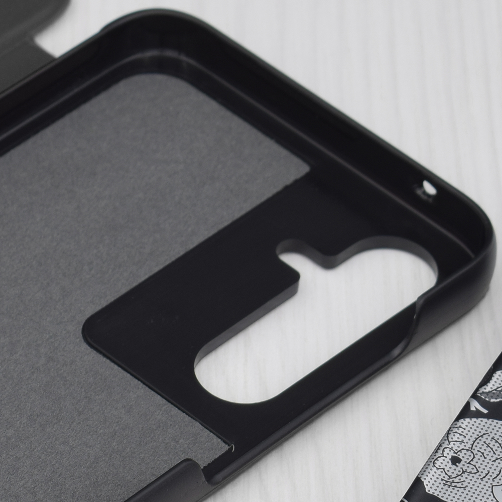 Jedním z klíčových prvků designu je průhledné okénko na přední straně, které umožňuje rychlý náhled na čas, datum a notifikace, aniž byste museli pouzdro otevírat. Pouzdro je typu "flip", což znamená, že chrání jak zadní stranu, tak i displej telefonu. Vnitřní strana pouzdra je opatřena měkkou podšívkou, která chrání displej před poškrábáním. Přesné výřezy pro konektory, mikrofony, reproduktory a fotoaparáty zajišťují plnou funkčnost vašeho zařízení bez jakéhokoli omezení. Tlačítka jsou chráněna, ale zároveň si zachovávají jistý a příjemný stisk. Pouzdro lze navíc složit do praktického stojánku pro pohodlné sledování obsahu.