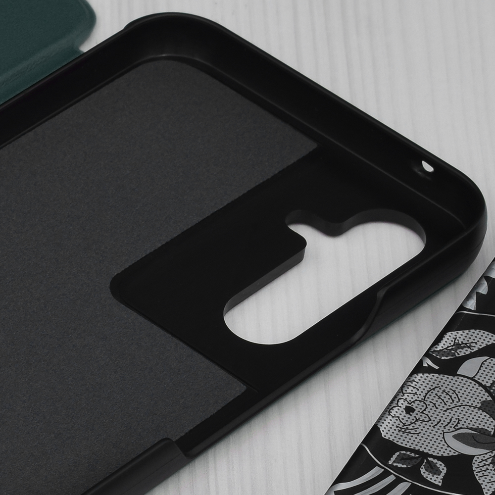 Techsuit eFold Series Samsung Galaxy A54 Tmavě zelenáObjevte dokonalou kombinaci stylu a ochrany s pouzdrem Techsuit eFold Series pro váš Samsung Galaxy A54. Toto elegantní pouzdro v tmavě zelené barvě je navrženo tak, aby podtrhlo sofistikovaný vzhled vašeho telefonu a zároveň mu poskytlo prvotřídní ochranu před každodenním opotřebením. Jeho design typu "flip" s průhledným okénkem na přední straně umožňuje rychlý přehled o čase a notifikacích, aniž byste museli pouzdro otevírat. Texturovaný povrch dodává pouzdru luxusní vzhled a příjemný pocit na dotek, zatímco precizní výřezy zajišťují bezproblémový přístup ke všem funkcím telefonu.