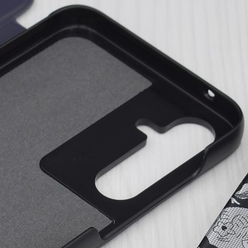 Pouzdro Techsuit eFold Series se pyšní promyšleným designem typu "flip", který obepíná telefon ze všech stran a zajišťuje tak komplexní ochranu. Jeho tmavě modrá barva s jemnou texturou dodává pouzdru luxusní vzhled a příjemný pocit na dotek. Klíčovým prvkem je vertikální průhledný pruh na přední straně, který umožňuje rychlý přehled o čase a notifikacích, aniž byste museli pouzdro otevírat. Díky inteligentnímu skládacímu mechanismu lze pouzdro snadno přeměnit na praktický stojánek, ideální pro sledování videí nebo videohovory.