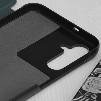 Toto pouzdro v tmavě zelené barvě zaujme svým sofistikovaným designem. Je vyrobeno z materiálu s jemnou texturou, která připomíná kůži, což mu dodává luxusní vzhled a příjemný pocit na dotek. Přední odklápěcí část je vybavena průhledným okénkem, které umožňuje rychlý přehled o čase, datu a notifikacích, aniž byste museli pouzdro otevírat. Díky svému provedení lze pouzdro snadno složit do praktického stojánku, ideálního pro sledování videí nebo videohovory. Precizní zpracování zajišťuje dokonalé padnutí na váš telefon a zároveň chrání jeho zadní stranu i displej před poškrábáním a nárazy.