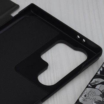 Pouzdro Techsuit eFold Series se pyšní minimalistickým a zároveň vysoce funkčním designem. Jeho povrch je vyveden v elegantní černé barvě s jemnou texturou, která připomíná kůži, což dodává vašemu telefonu prémiový vzhled a příjemný pocit na dotek. Klíčovým prvkem je průhledný vertikální pruh na přední straně, který umožňuje rychlý náhled na čas, datum a důležitá oznámení, aniž byste museli pouzdro otevírat. Díky promyšlené konstrukci lze pouzdro snadno složit do praktického stojánku, ideálního pro sledování videí nebo videohovory. Všechny výřezy pro konektory, mikrofony, reproduktory a fotoaparáty jsou precizně zpracovány, což zajišťuje plnou funkčnost telefonu bez jakéhokoli omezení. Tlačítka si zachovávají jistý stisk a přístup k nabíjecímu portu je vždy bezproblémový.