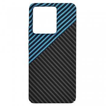 Pouzdro Techsuit Carbonite FiberShell se pyšní moderním a dynamickým designem. Zadní strana je převážně pokryta elegantní texturou imitující karbonová vlákna v tmavě šedé až černé barvě, která dodává pouzdru sofistikovaný a sportovní vzhled. Horní levá část, v okolí modulu fotoaparátu, je oživena výrazným prvkem s modrými diagonálními pruhy, které vytvářejí poutavý kontrast a podtrhují jedinečnost designu Blue Pulse. Tento design nejenže skvěle vypadá, ale také poskytuje lepší úchop a minimalizuje riziko vyklouznutí telefonu z ruky.