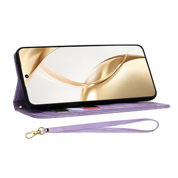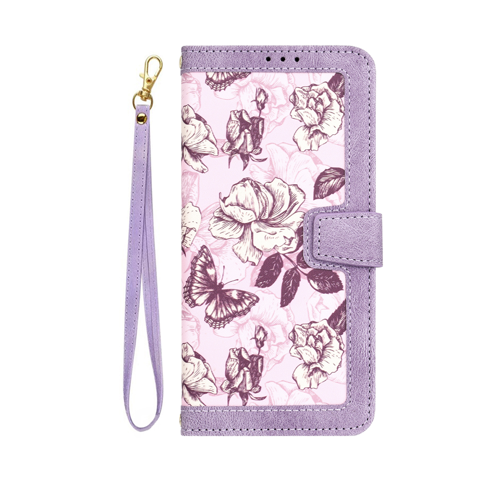 Pouzdro Techsuit FlipCraft se pyšní sofistikovaným designem, který kombinuje praktičnost s estetikou. Vnější strana je vyrobena z materiálu s jemnou texturou připomínající kůži v sytě fialové barvě, která dodává pouzdru luxusní vzhled. Přední stranu zdobí elegantní panel s květinovým a motýlím vzorem v něžnějších fialových a růžových tónech, což vytváří poutavý kontrast a dodává pouzdru jedinečný charakter.