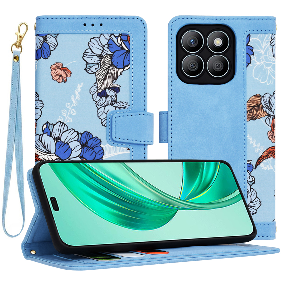 Pouzdro Techsuit FlipCraft se pyšní atraktivním designem v odstínu zářivé modré, který dodá vašemu telefonu svěží a moderní vzhled. Vnější strana pouzdra je vyrobena z příjemného materiálu s jemnou texturou, zatímco vnitřní strana flipu a část vnější strany zdobí nádherný květinový vzor. Tento vzor, tvořený modrými, bílými a jemnými oranžovými květy a listy, dodává pouzdru jedinečný a elegantní charakter. Praktický magnetický uzávěr zajišťuje bezpečné zavření pouzdra a chrání displej před poškrábáním. Součástí je také odnímatelný řemínek na zápěstí pro pohodlné a bezpečné nošení. Uvnitř pouzdra naleznete praktické sloty na karty, které vám umožní mít vždy po ruce platební karty nebo doklady. Telefon je pevně uchycen v precizně tvarované vnitřní vaničce z odolného materiálu, která zaručuje snadný přístup ke všem konektorům a tlačítkům.