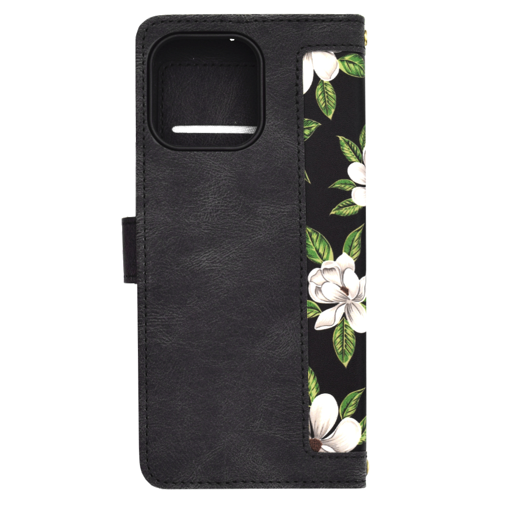 Pouzdro Techsuit FlipCraft Flowers of the Dawn pro iPhone 15 Pro Max je navrženo jako elegantní flipové pouzdro, které poskytuje komplexní ochranu celého telefonu. Jeho dominantou je černý podklad zdobený nádherným květinovým vzorem bílých květů, připomínajících magnolie, s jemnými zelenými lístky. Tento motiv dodává pouzdru svěží a zároveň sofistikovaný vzhled, ideální pro každodenní nošení i speciální příležitosti.