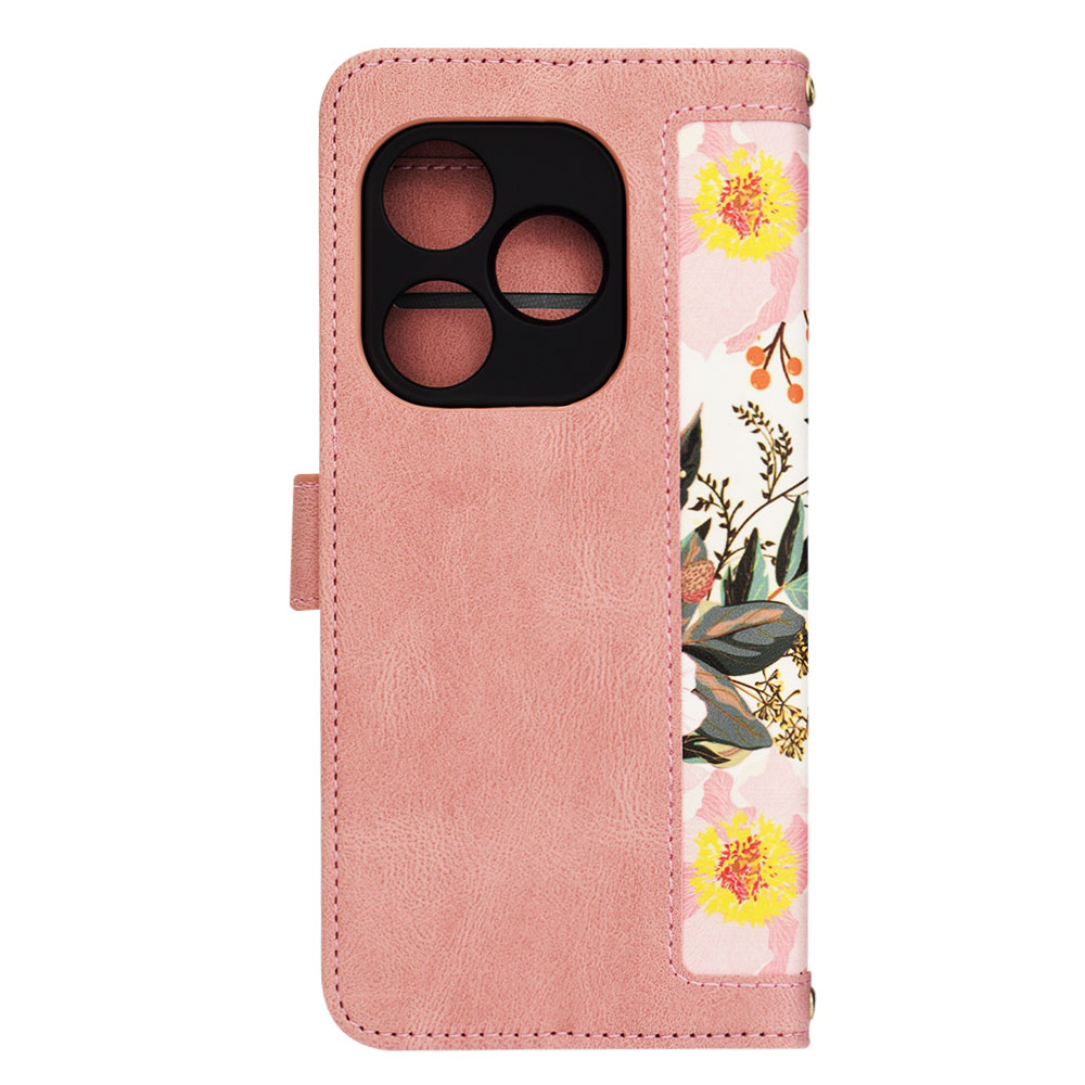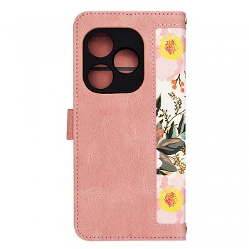 Pouzdro Techsuit FlipCraft se pyšní sofistikovaným designem, který okamžitě upoutá pozornost. Vnější strana je vyvedena v jemné, ale výrazné Sweetheart Pink barvě s texturou připomínající broušenou kůži, což dodává pouzdru luxusní vzhled a příjemný pocit na dotek. Vnitřní strana flipu a část zadní strany jsou zdobeny nádherným květinovým vzorem s motivy růžových a žlutých květů, zelených listů a drobných bobulí na světlém podkladu, což vytváří svěží a romantický dojem.