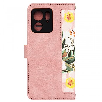 Pouzdro Techsuit FlipCraft se pyšní sofistikovaným designem, který kombinuje praktičnost s estetikou. Vnější strana je vyrobena z materiálu připomínajícího jemnou kůži v něžné růžové barvě, doplněné o precizní prošívání po okrajích, které dodává pouzdru luxusní vzhled. Přední odklápěcí část zdobí nádherný květinový vzor na světlém podkladu, s dominantními květy v odstínech žluté, růžové a bílé, doplněnými o zelené listy a drobné oranžové plody. Tento vzor se elegantně prolíná i na vnitřní stranu pouzdra, kde naleznete praktické přihrádky na karty. Pouzdro je vybaveno magnetickým zapínáním pro bezpečné uzavření a součástí balení je i praktické poutko na zápěstí v ladícím růžovém odstínu.