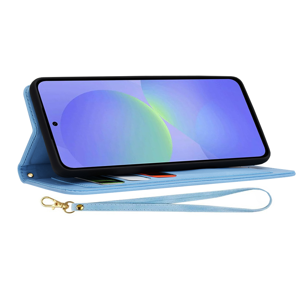 Pouzdro Techsuit FlipCraft se pyšní promyšleným designem, který zaujme na první pohled. Vnější strana je vyvedena v příjemném, světle modrém odstínu, zatímco vnitřní strana a část vnějšího překryvu zdobí nádherný květinový vzor. Ten kombinuje odstíny modré, bílé a jemné tóny oranžovo-červené, což vytváří harmonický a elegantní celek. Pouzdro je vybaveno praktickým magnetickým zavíráním, které zajišťuje bezpečné uzavření a ochranu displeje. Uvnitř naleznete praktické přihrádky na karty, které z pouzdra dělají ideálního společníka pro každodenní nošení. Pro maximální pohodlí je součástí balení také odnímatelný řemínek na zápěstí, který zabraňuje nechtěnému pádu telefonu. Telefon je pevně uchycen v precizně tvarovaném černém silikonovém lůžku, které absorbuje nárazy a chrání hrany zařízení.