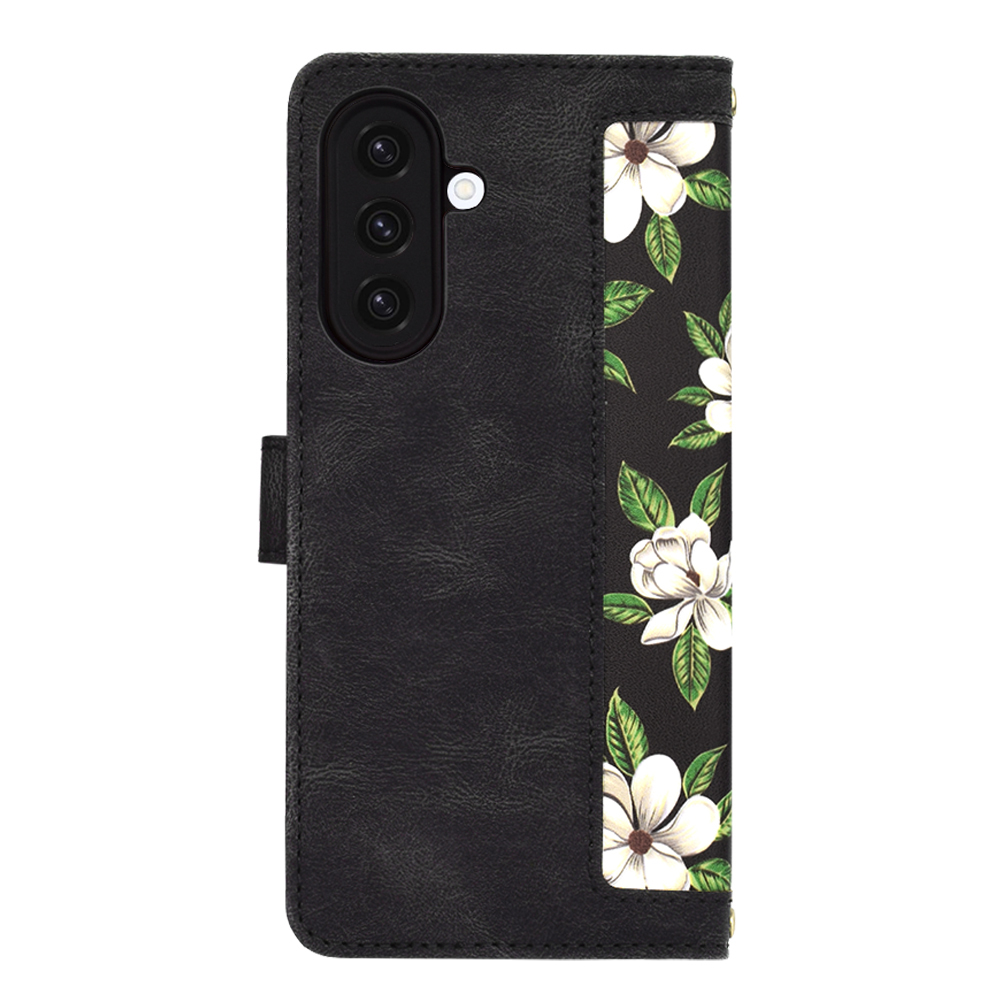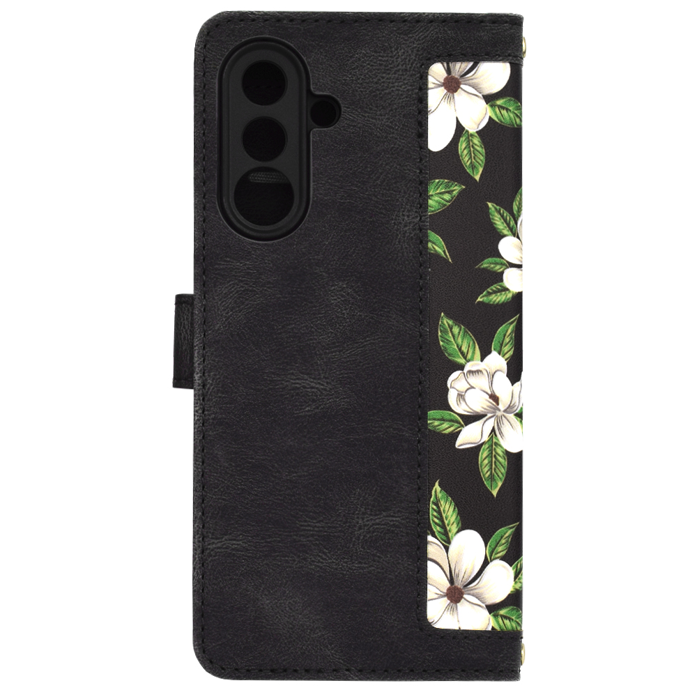 Pouzdro FlipCraft se pyšní sofistikovaným designem s motivem bílých květů magnólie a zelených listů, které se rozprostírají na elegantním černém pozadí. Tento vzor dodává pouzdru svěží a zároveň nadčasový vzhled. Jedná se o flipové pouzdro, které chrání telefon ze všech stran, včetně displeje. Vnitřní strana pouzdra nabízí praktické přihrádky na karty a bankovky, což z něj činí ideálního společníka pro každodenní nošení. Součástí je také praktické poutko pro snadné a bezpečné uchopení telefonu.