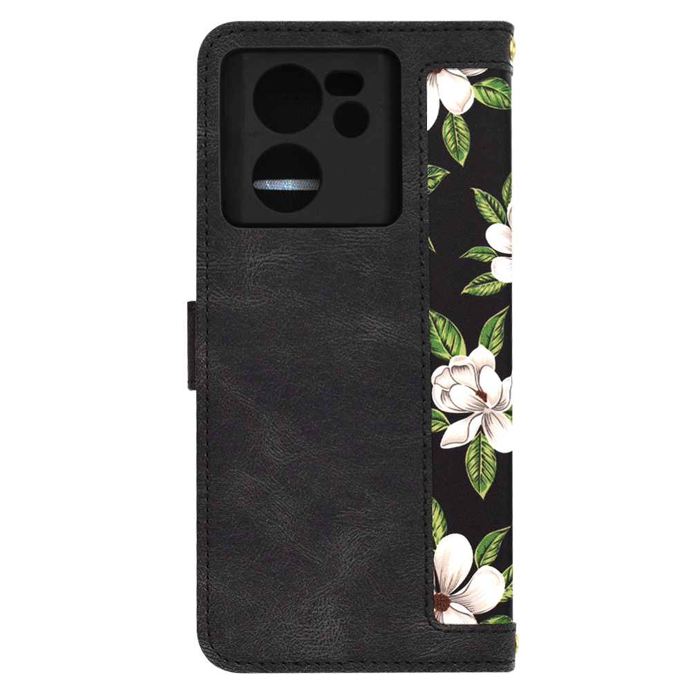Pouzdro FlipCraft Flowers of the Dawn zaujme svým jedinečným designem. Vnější strana je vyvedena v elegantní černé barvě, kterou zdobí nádherný vzor bílých květů s jemnými zelenými listy, připomínající rozkvétající magnolie za úsvitu. Tento motiv dodává pouzdru svěží a sofistikovaný vzhled. Pouzdro je typu "flip", což znamená, že chrání jak záda, tak i displej vašeho telefonu před poškrábáním a nárazy. Vnitřní strana nabízí praktické přihrádky na platební karty nebo bankovky, čímž se stává ideálním společníkem pro každodenní nošení. Precizní výřezy zajišťují snadný přístup ke všem portům a tlačítkům, zatímco velký výřez pro kamerový modul na zadní straně zaručuje, že vaše fotografie zůstanou bez kompromisů. Součástí balení je i praktické poutko na zápěstí pro ještě bezpečnější manipulaci.
