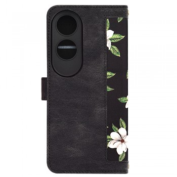 Toto flipové pouzdro se pyšní atraktivním designem s motivem bílých květů a zelených listů na elegantním černém pozadí, které evokuje klid a krásu rozbřesku. Vnější část je vyrobena z kvalitní syntetické kůže s jemnou texturou, která je příjemná na dotek a zároveň odolná proti každodennímu opotřebení. Pouzdro je navrženo jako peněženkové, což znamená, že kromě ochrany telefonu nabízí i praktické vnitřní přihrádky na karty či bankovky.
