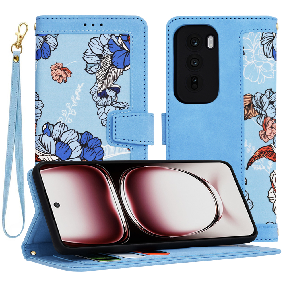 Pouzdro se pyšní atraktivním designem v zářivě modrém odstínu, který je doplněn jemným květinovým vzorem. Vzor kombinuje modré, bílé a oranžovo-červené květy a listy na světlejším modrém podkladu, což vytváří svěží a moderní vzhled. Vnitřní strana pouzdra je rovněž v modré barvě a nabízí praktické přihrádky na karty, které oceníte pro uložení dokladů či platebních karet. Telefon je bezpečně uchycen v černém silikonovém/TPU vnitřním obalu, který zajišťuje dodatečnou ochranu proti nárazům. Pouzdro je vybaveno magnetickým zapínáním pro bezpečné uzavření a praktickým poutkem na zápěstí pro snadné a bezpečné nošení. Precizní výřezy pro fotoaparát, konektory a tlačítka zaručují plnou funkčnost telefonu bez nutnosti vyjímání z pouzdra.