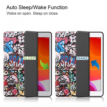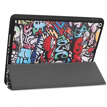 Pouzdro Techsuit FoldPro Urban Vibe se pyšní originálním graffiti designem, který je plný živých barev a dynamických prvků. Přední strana je zdobena pestrou směsicí stylizovaných písmen, tvarů a komiksových motivů v odstínech červené, modré, zelené, žluté a černé, což vytváří moderní a mladistvý vzhled. Zadní část pouzdra je vyrobena z průhledného pevného materiálu, který nechává vyniknout originální design vašeho iPadu a zároveň poskytuje spolehlivou ochranu. Vnitřní strana předního krytu je v elegantní tmavé barvě, která doplňuje celkový design.