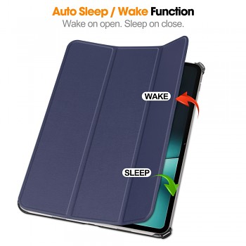 Jedním z klíčových prvků je skládací přední kryt, který umožňuje nastavit tablet do dvou praktických poloh – pro pohodlné sledování obsahu nebo pro ergonomické psaní. Díky zesíleným rohům poskytuje pouzdro zvýšenou ochranu proti pádům a nárazům, minimalizující riziko poškození vašeho tabletu. Precizní výřezy zajišťují snadný přístup ke všem portům, tlačítkům a kameře, aniž byste museli tablet z pouzdra vyjímat. Design je optimalizován pro plné zobrazení displeje, takže nic nebrání vašemu vizuálnímu zážitku.
