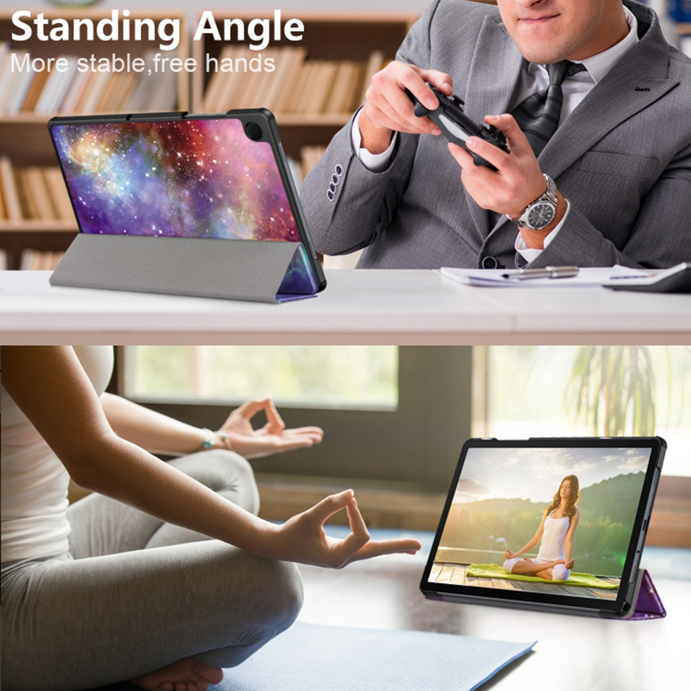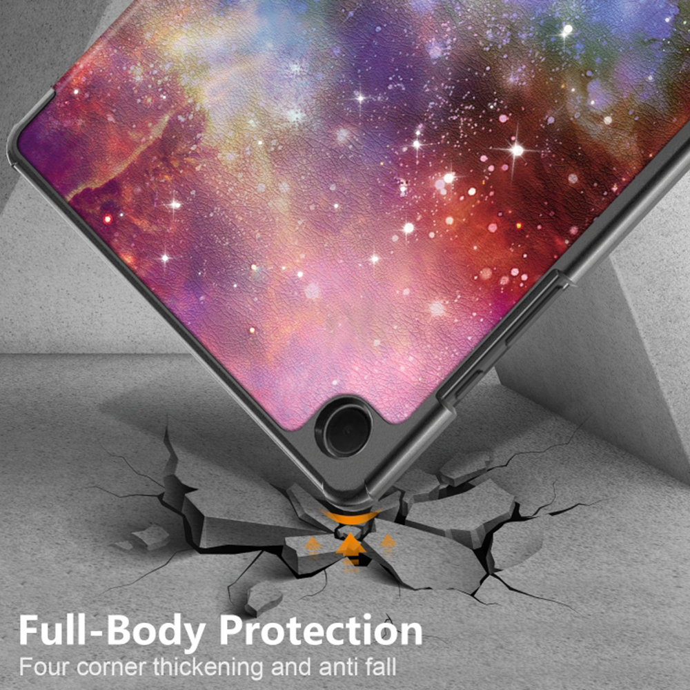Pouzdro Techsuit FoldPro zaujme na první pohled svým unikátním designem s motivem galaxie, který dodá vašemu tabletu osobitý a moderní vzhled. Jeho štíhlý a lehký profil zajišťuje, že tablet zůstane snadno přenosný a neztratí nic ze své elegance. Vnější strana je vyrobena z odolného materiálu, který je příjemný na dotek a zároveň chrání před poškrábáním, prachem a drobnými nárazy. Vnitřní strana je pak šetrná k displeji vašeho zařízení.