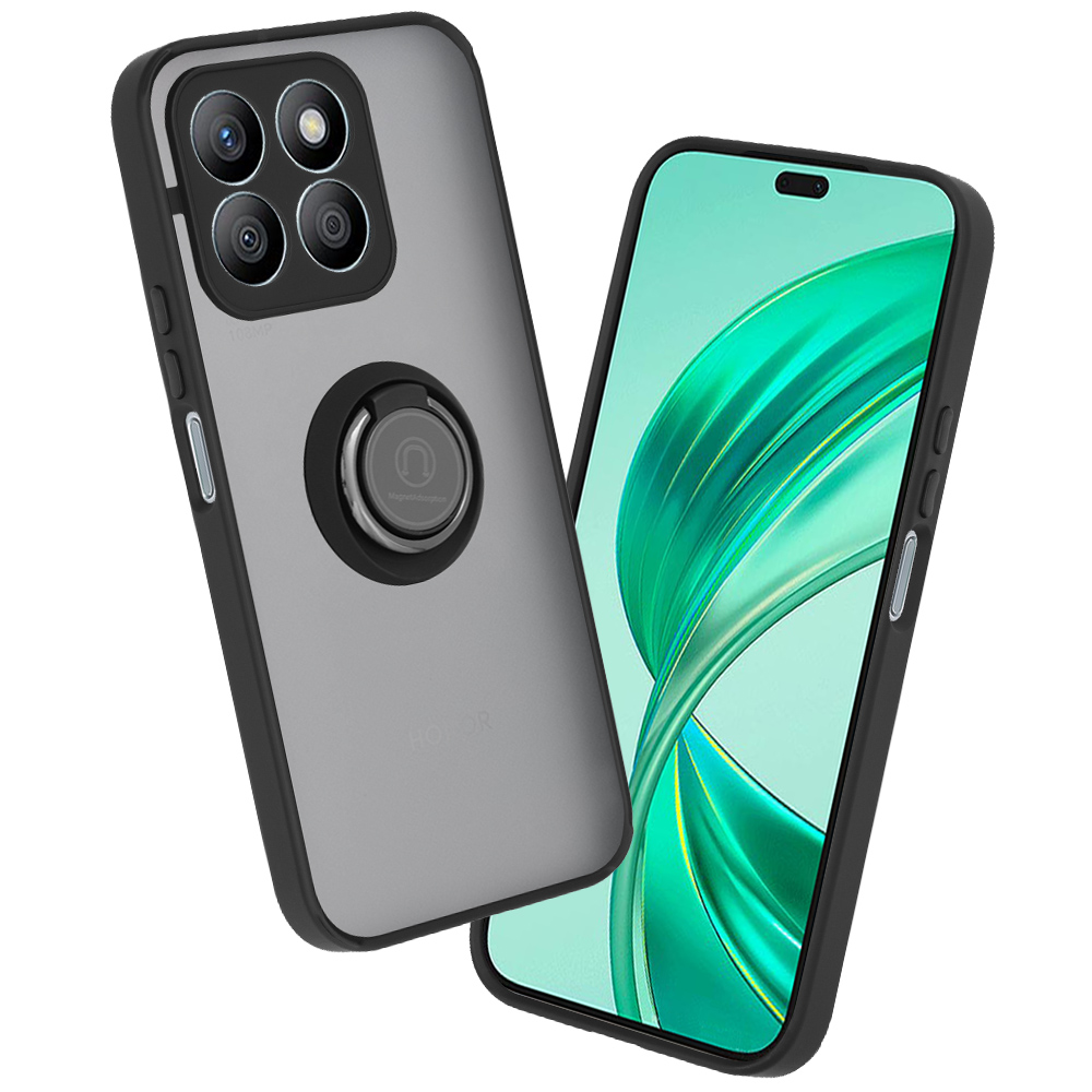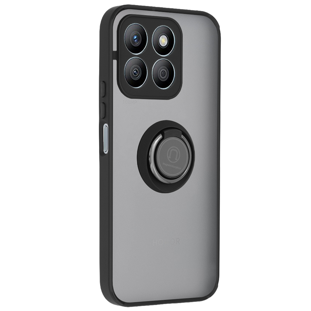 Pouzdro Techsuit Glinth pro Honor X8b v černé barvě se vyznačuje elegantním a funkčním designem. Zadní strana pouzdra je vyrobena z průsvitného šedého materiálu, který decentně odhaluje původní design telefonu, zatímco robustní černé okraje poskytují vynikající ochranu proti nárazům a pádům. Integrovaný magnetický kroužek na zadní straně slouží jako praktický stojánek nebo držák, a zároveň zajišťuje kompatibilitu s magnetickými držáky. Oblast kolem fotoaparátu je precizně zvýšená a lemovaná černým rámečkem, což chrání čočky před poškrábáním. Celkový vzhled je minimalistický, ale zároveň vysoce efektivní v ochraně vašeho zařízení.