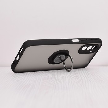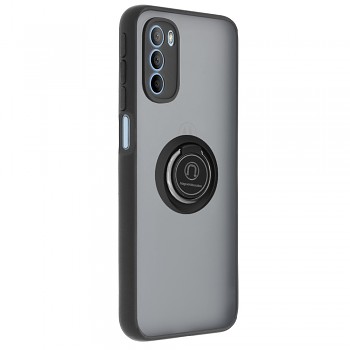 Pouzdro Techsuit Glinth se pyšní elegantním a funkčním designem. Jeho zadní strana je vyrobena z průsvitného materiálu v kouřově šedé barvě, který decentně odhaluje původní design telefonu a zároveň mu dodává sofistikovaný vzhled. Okraje pouzdra jsou v matně černé barvě, což zajišťuje pevný úchop a dodatečnou ochranu proti nárazům. Integrovaný kovový kroužek na zadní straně slouží jako praktický stojánek pro sledování obsahu nebo jako bezpečný úchyt pro prst, čímž minimalizuje riziko pádu telefonu. Kroužek je navíc kompatibilní s magnetickými držáky do auta, což zvyšuje jeho univerzálnost.