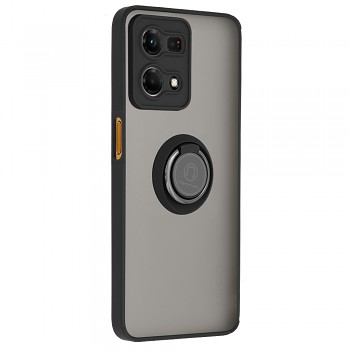 Design krytu Glinth se vyznačuje robustní konstrukcí s průsvitnou kouřově šedou zadní stranou, která decentně nechává vyniknout originální design telefonu. Okraje krytu jsou v matné černé barvě a poskytují zvýšenou ochranu proti nárazům, zejména v rozích. Dominantním prvkem je integrovaný magnetický kroužek na zadní straně, který slouží jako praktický stojánek nebo úchyt pro bezpečné držení telefonu. Výrazné zlatavé/oranžové boční tlačítka dodávají krytu moderní a stylový akcent. Oblast kolem fotoaparátu je precizně ohraničena a zvýšena pro maximální ochranu objektivů.