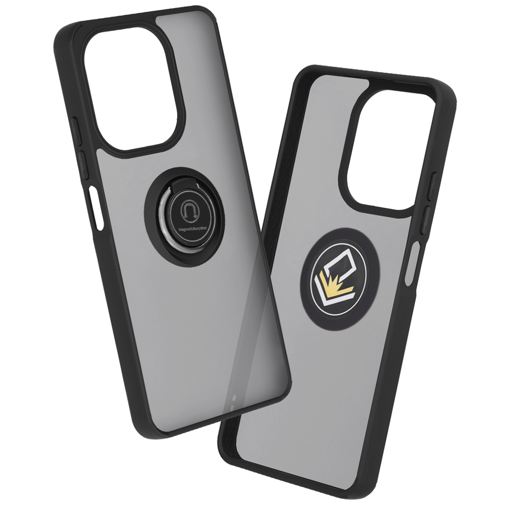 Na zadní straně krytu naleznete integrovaný kovový kroužek, který slouží jako praktický stojánek pro pohodlné sledování obsahu. Tento kroužek je navíc magneticky kompatibilní, což umožňuje snadné a bezpečné uchycení telefonu do magnetických držáků v autě. Kryt je precizně zpracován s přesnými výřezy pro všechny konektory, mikrofony, reproduktory a fotoaparáty, což zajišťuje plnou funkčnost zařízení. Tlačítka jsou krytá, ale zachovávají si jistý a citlivý stisk. Zvýšené okraje kolem displeje a fotoaparátu poskytují dodatečnou ochranu proti poškrábání při položení telefonu na rovný povrch.